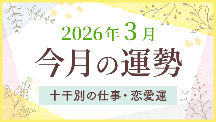 2026年3月の全体運はもちろん、日干ごと(甲・乙・丙・丁・戊・己・庚・辛・壬・癸)の総合運や仕事運、恋愛運もお届け。